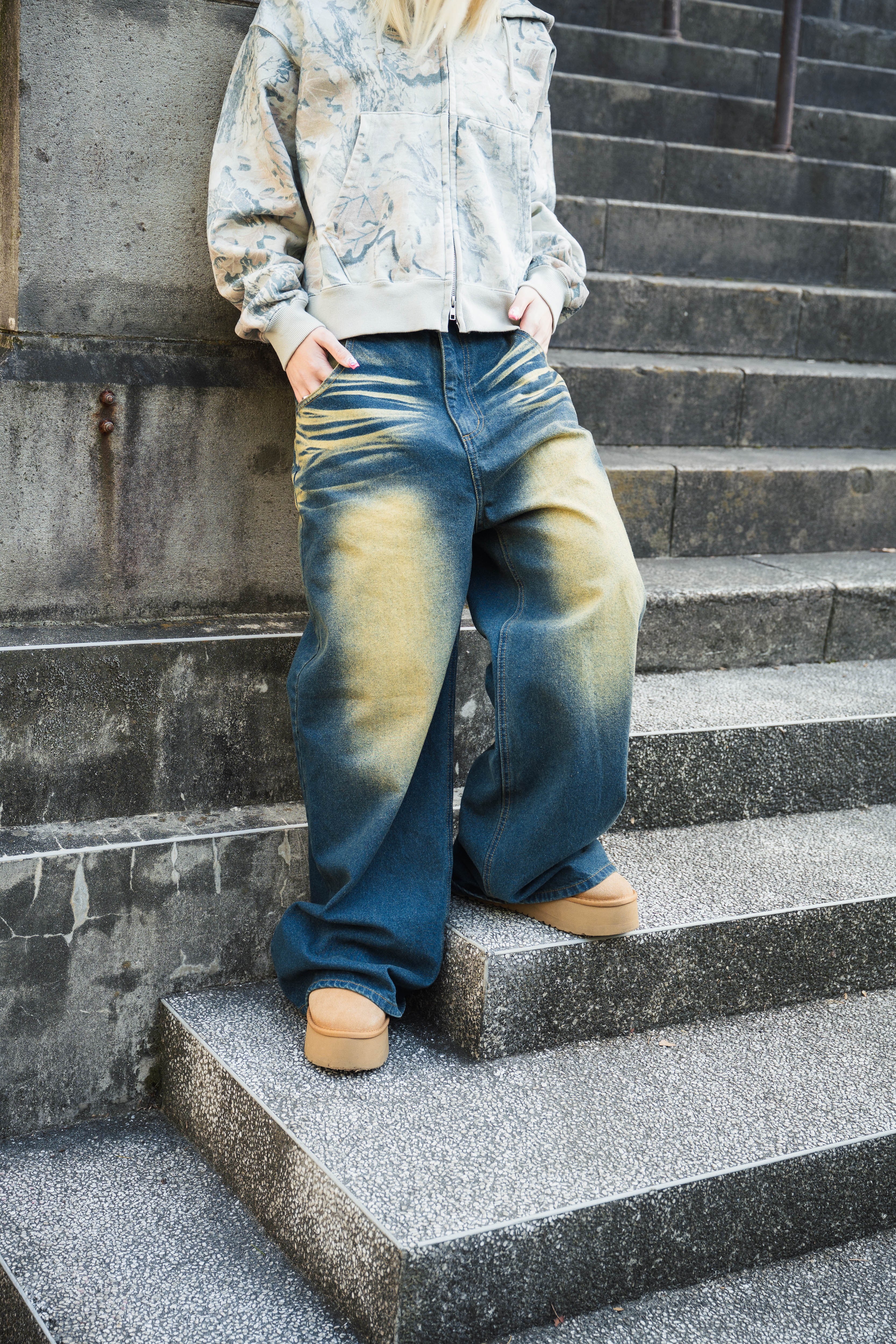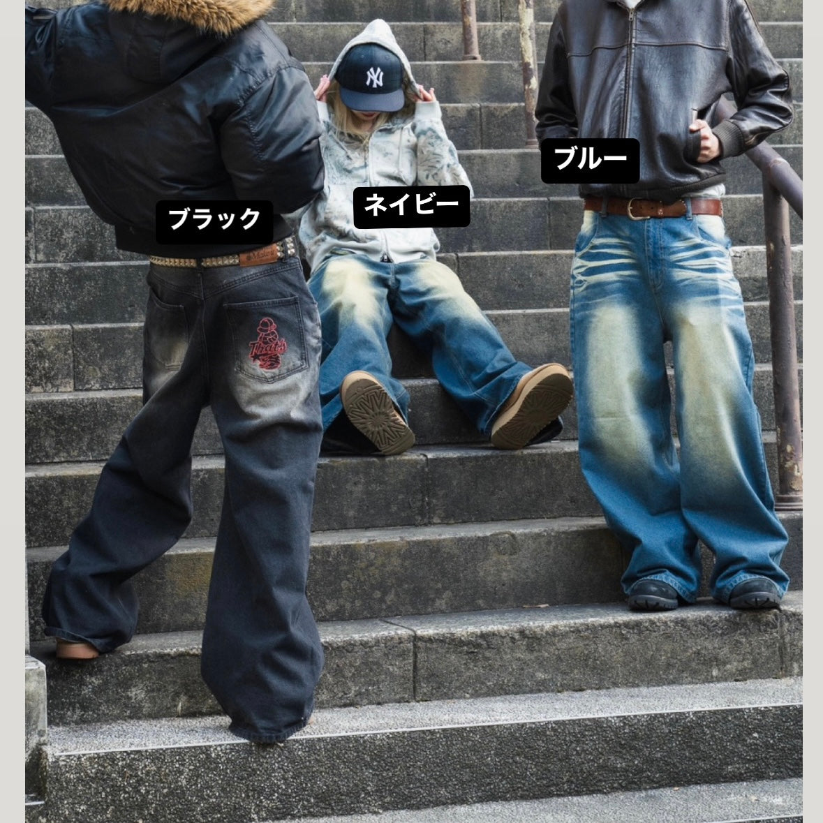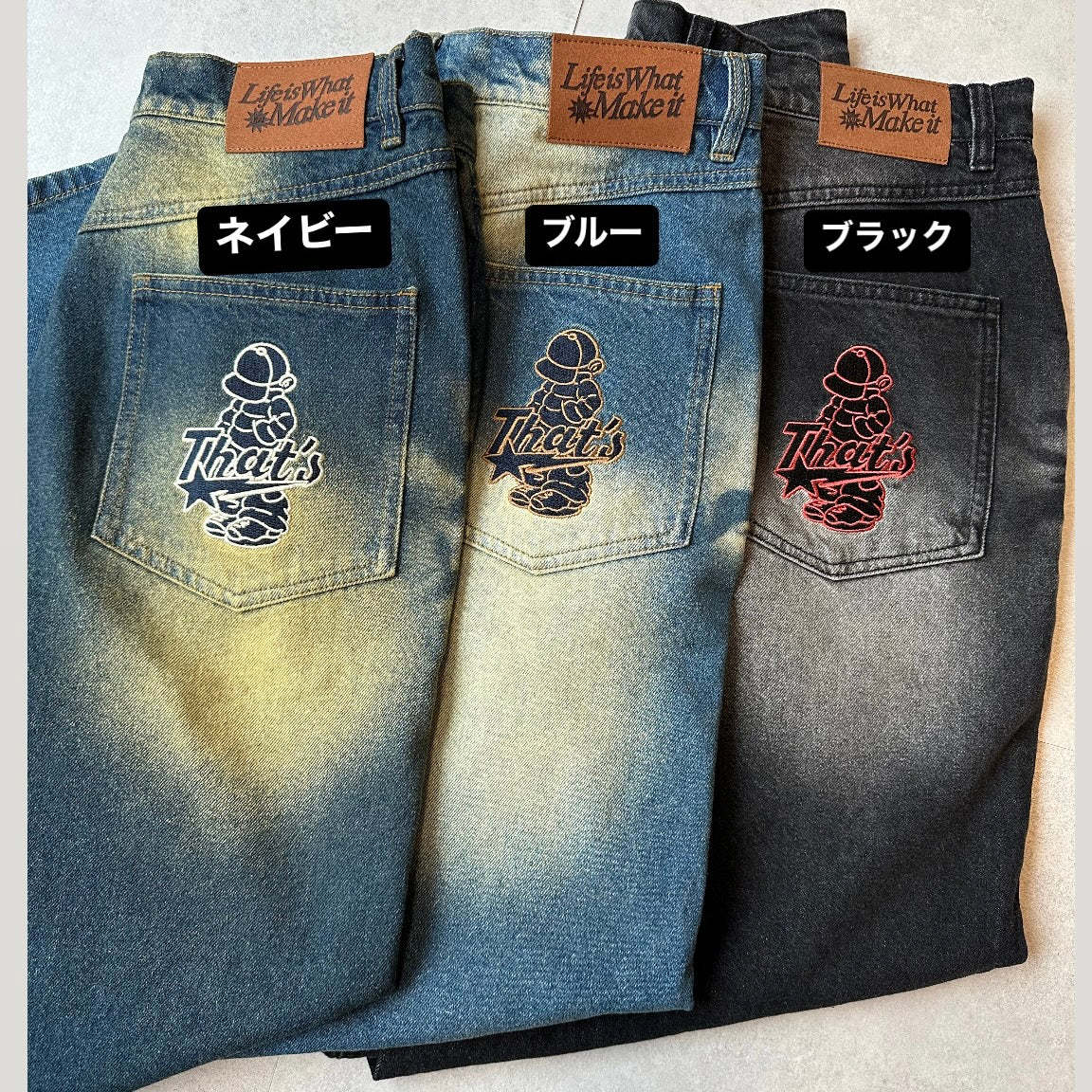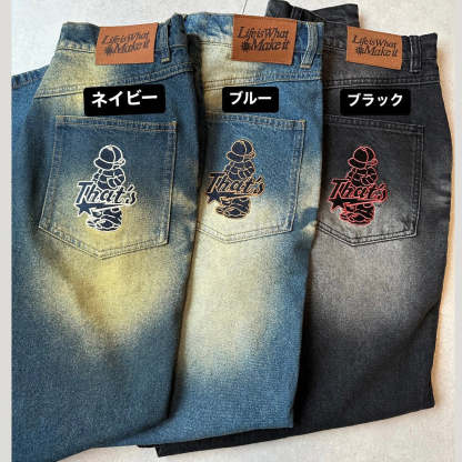 "CAP BOY" logo Baggy denim pants free