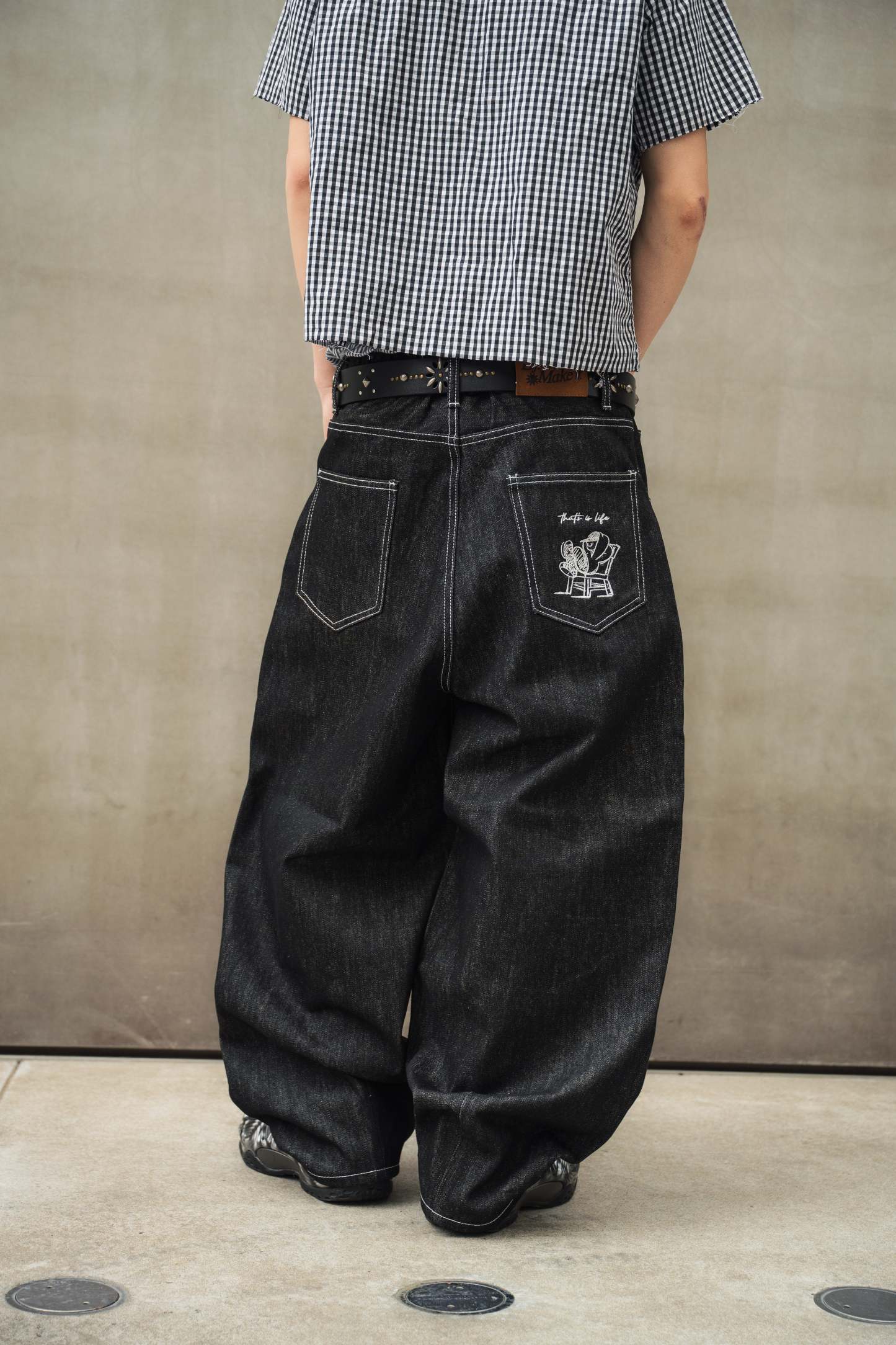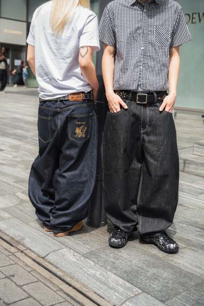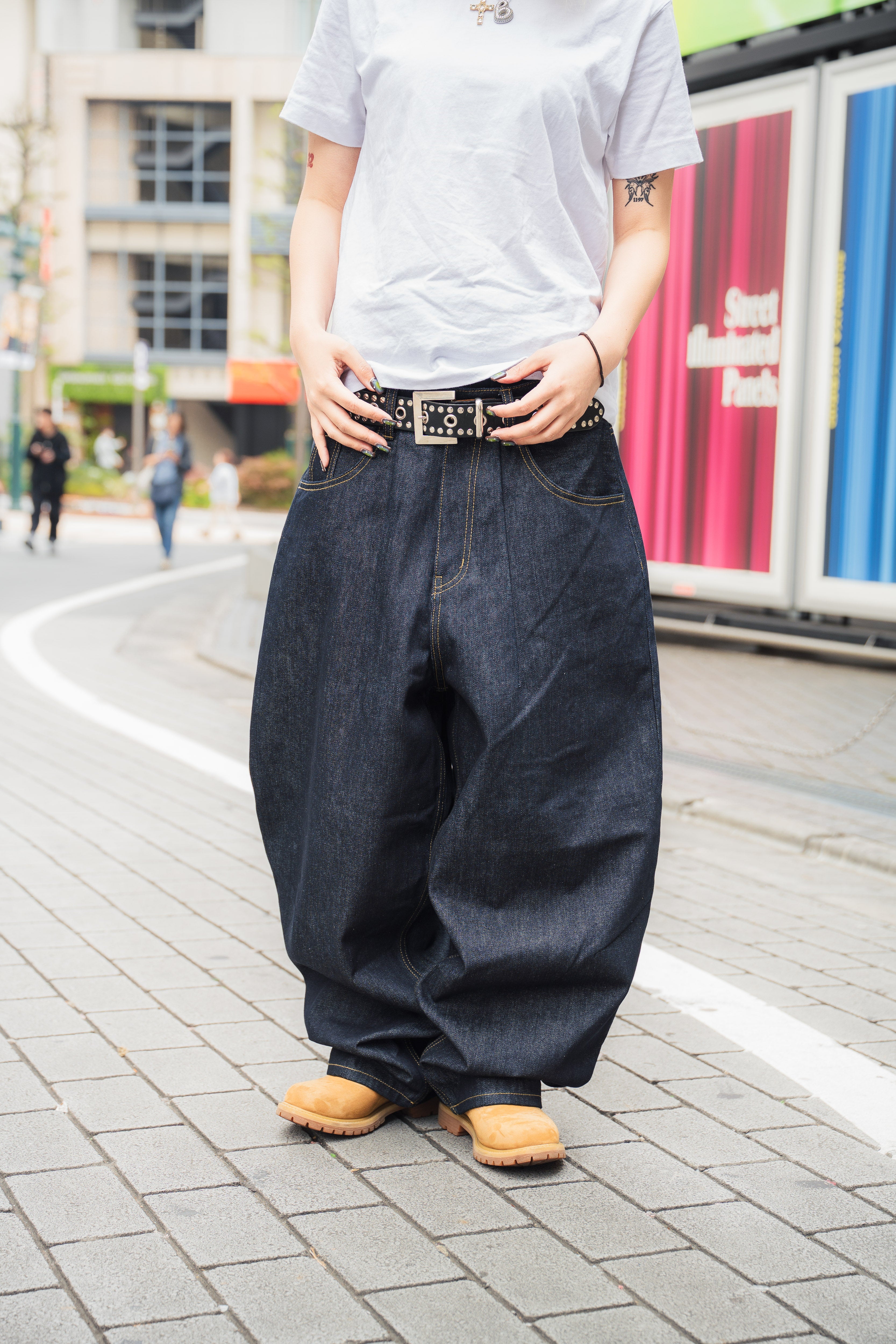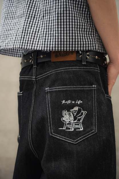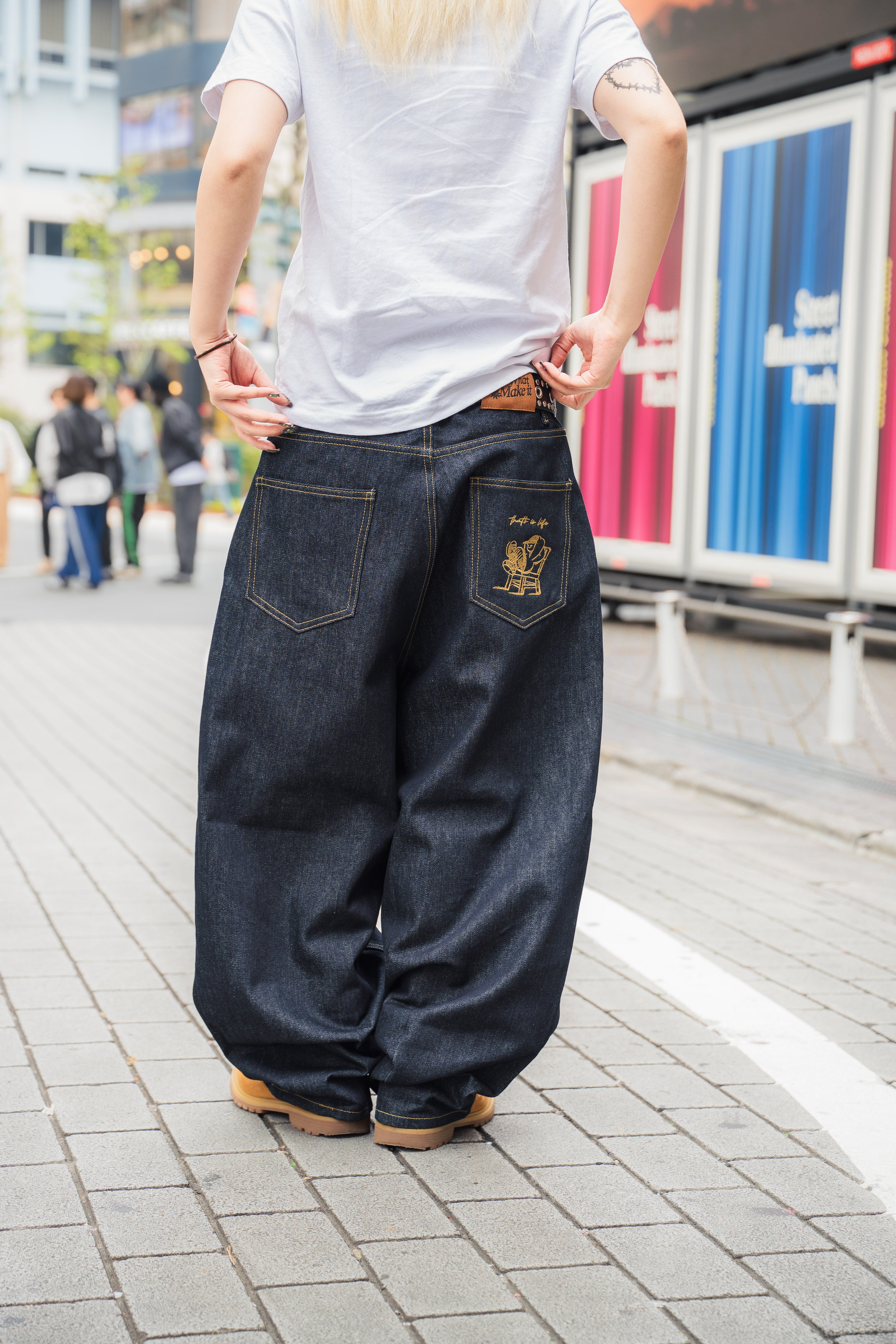 "CHILL LIFE" Rigid balloon Denim pants free