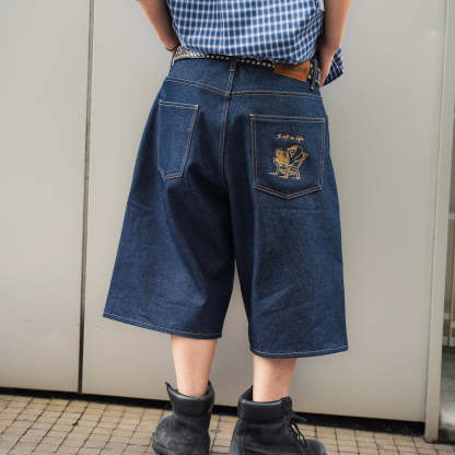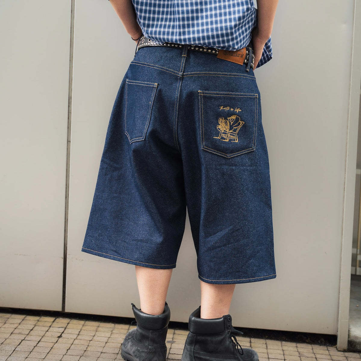 "CHILL LIFE" Rigid Denim shorts