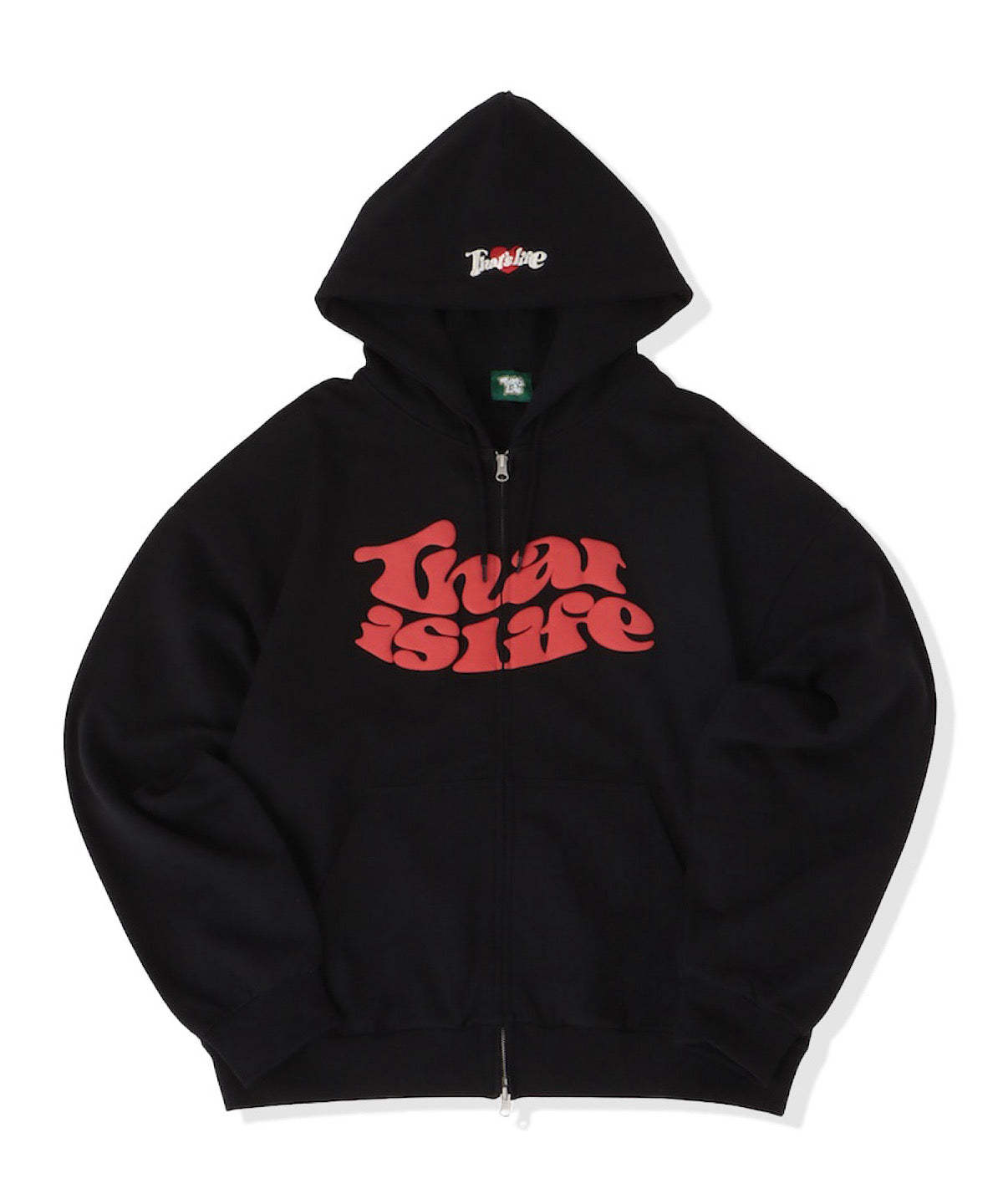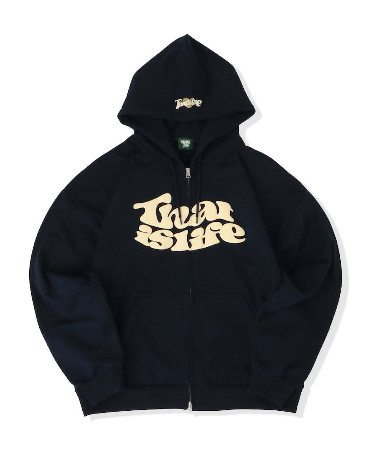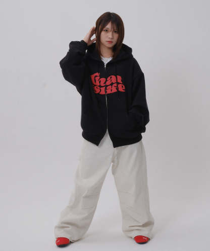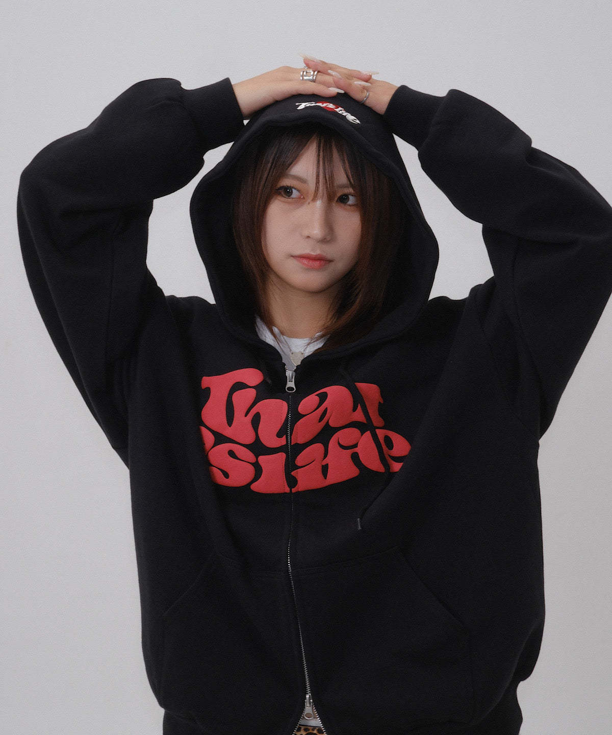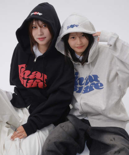 フロントに発泡プリント、フード部分に刺繍を施し、That’s lifeのこだわりを詰め込みました!!
