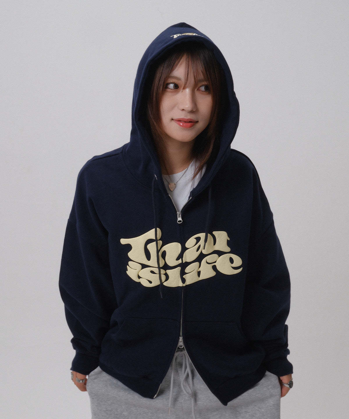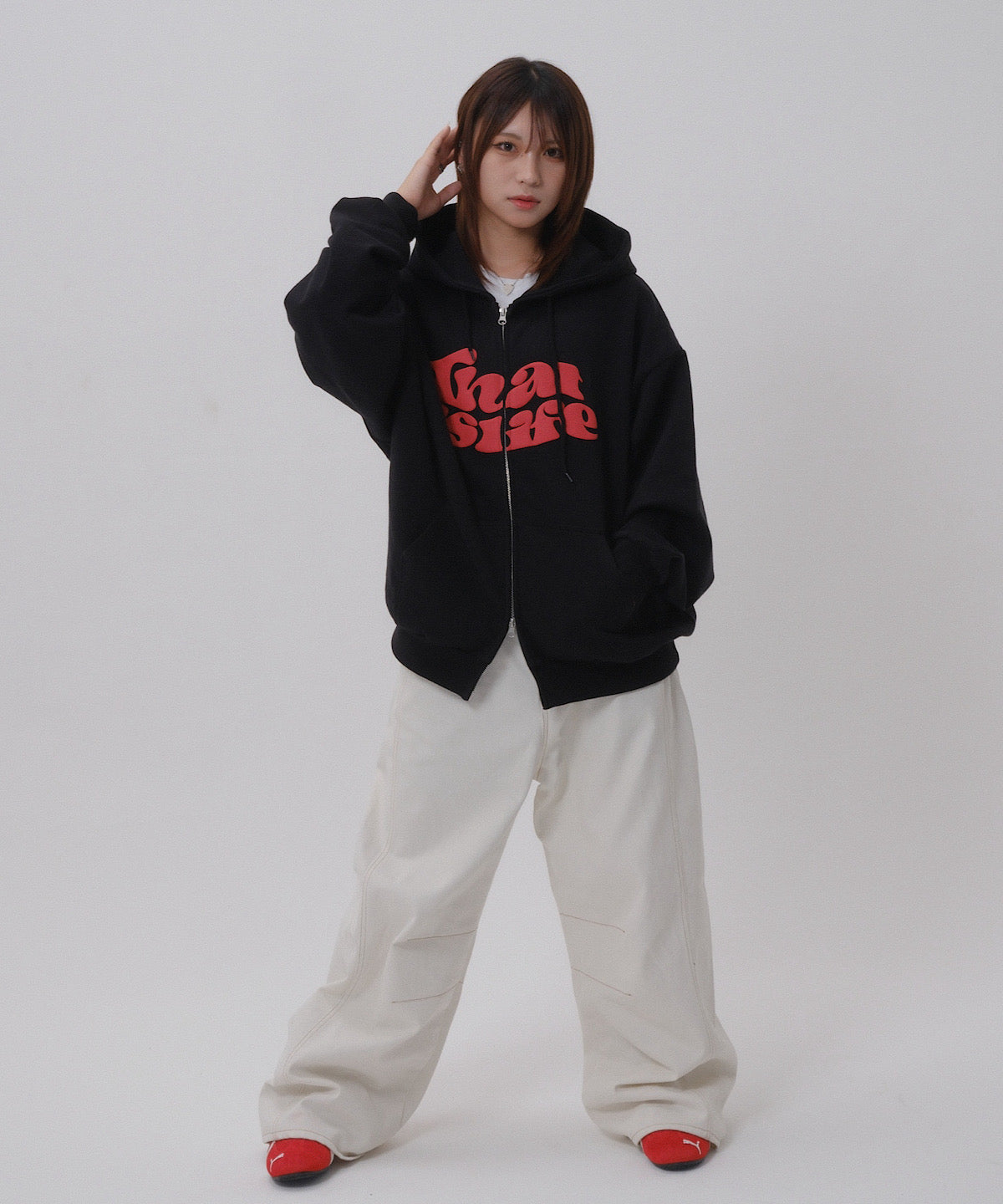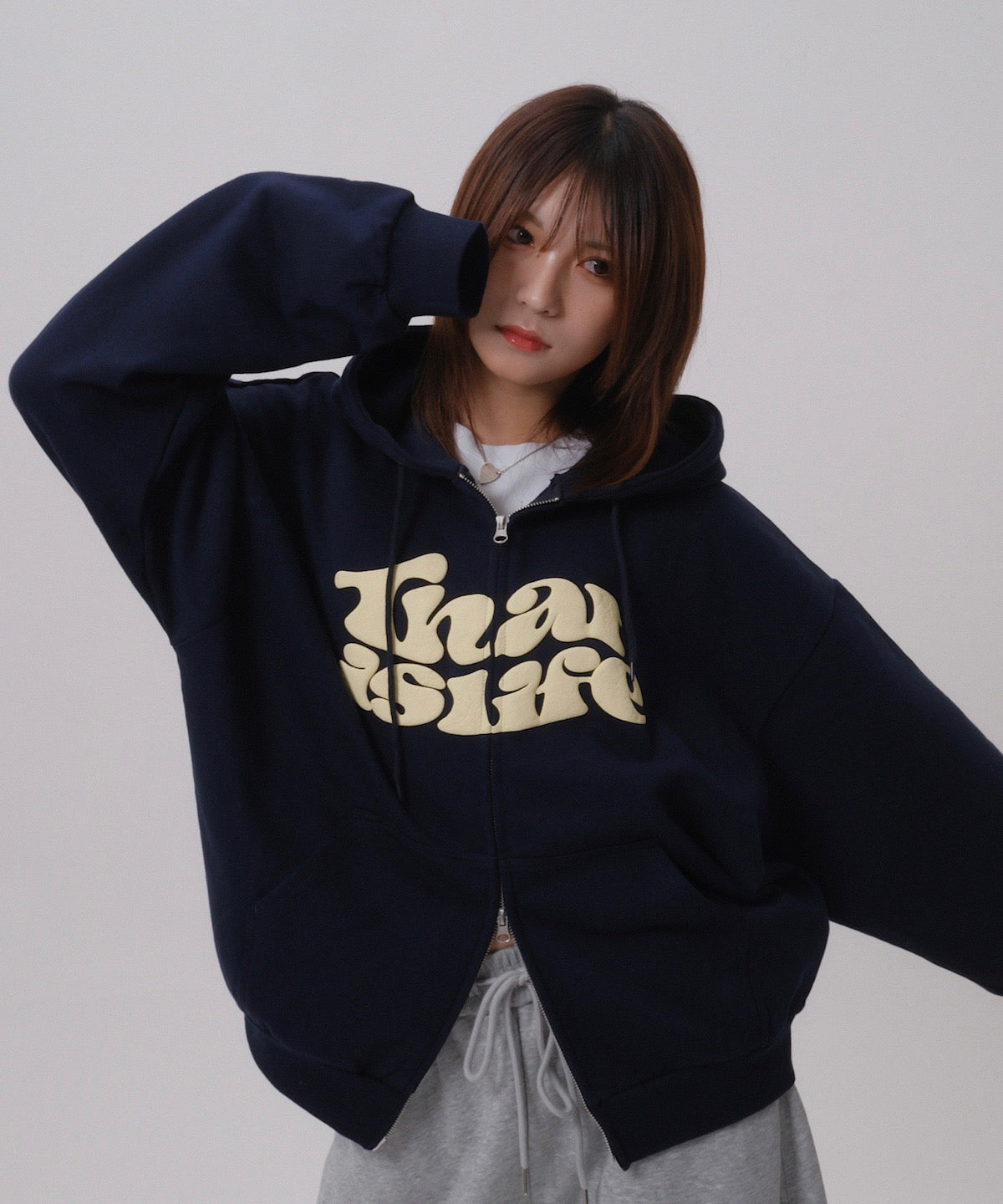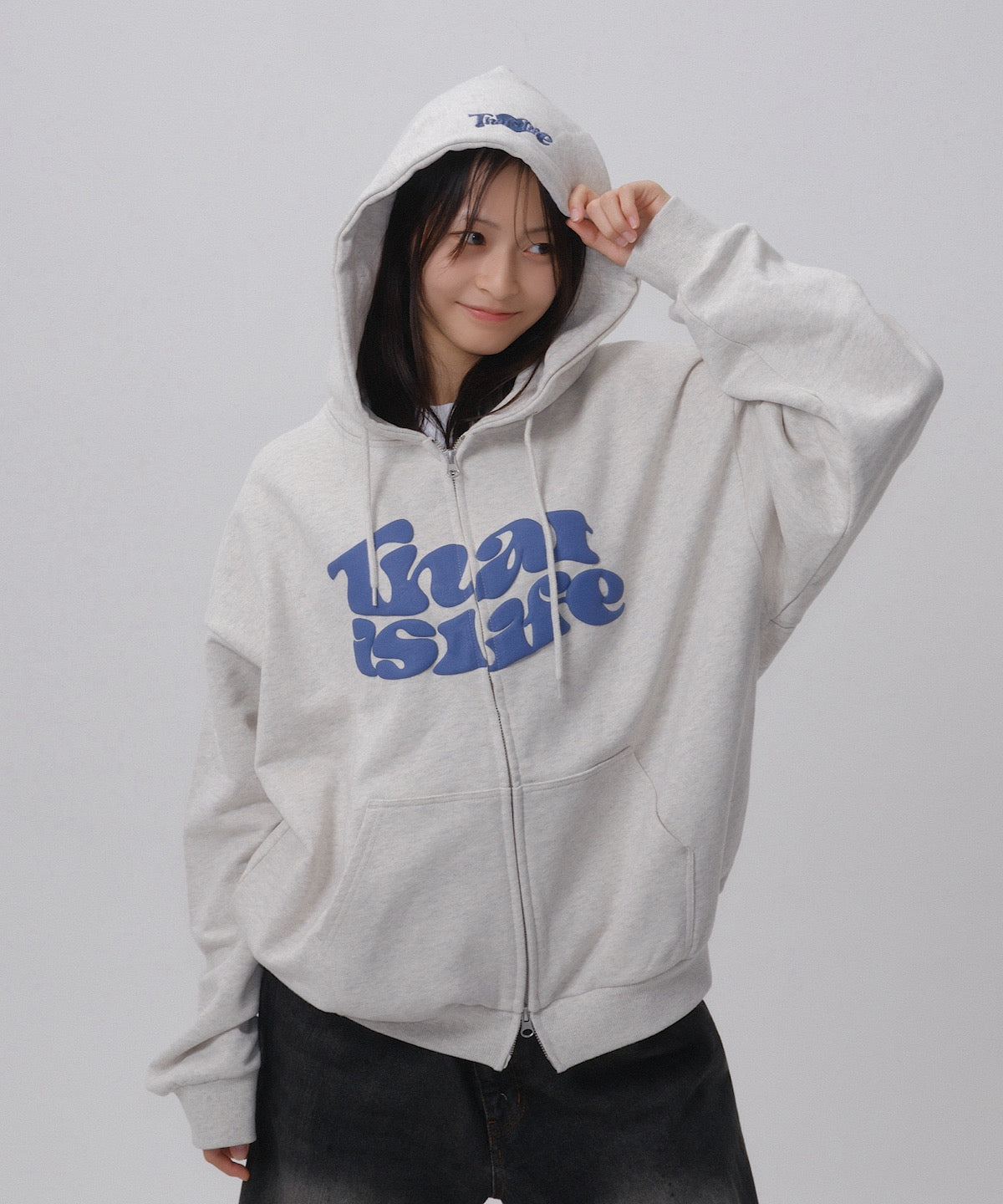 フロントに発泡プリント、フード部分に刺繍を施し、That’s lifeのこだわりを詰め込みました!!