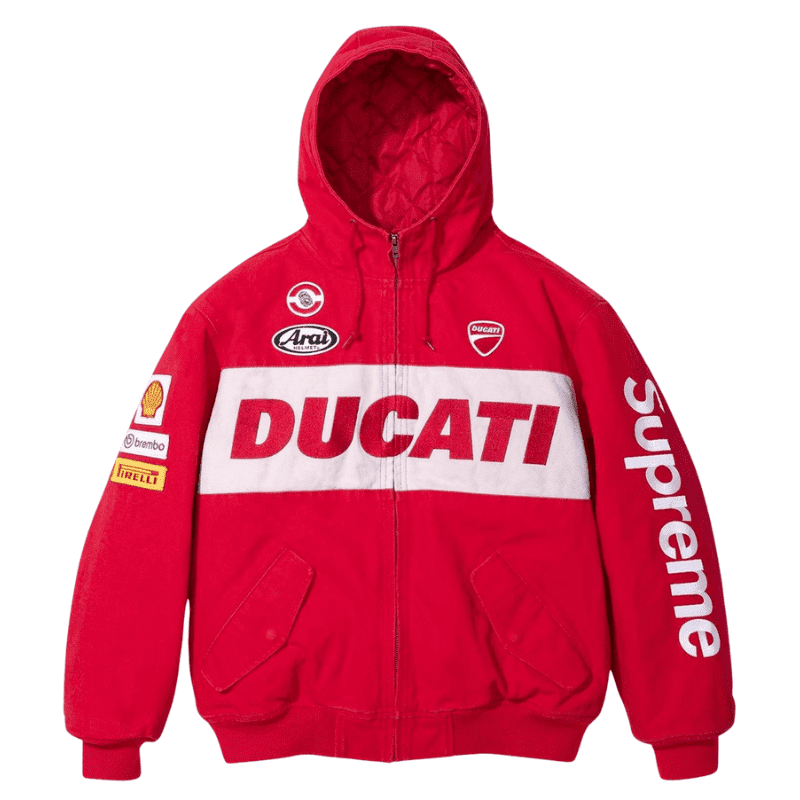 The Supreme Ducati Jacket is a collaboration that blends Supreme’s bold streetwear style with Ducati’s iconic racing heritage, creating a high-performance and fashion-forward piece.